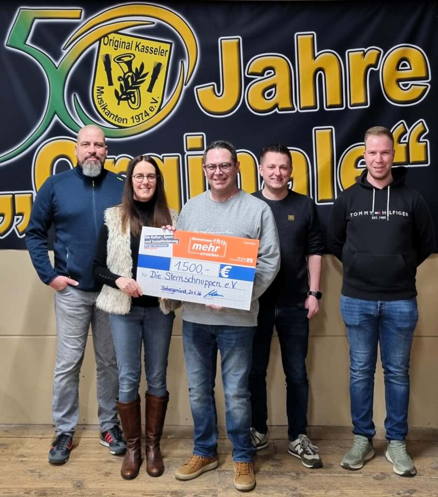 Auch in 2025 boten die Original Kasseler Musikanten (OKM) wieder ihren beliebten Nikolaus-Service an. Das Ergebnis der jüngsten Aktion waren stolze 1500,- EUR, die kürzlich an den Verein „Die Sternschnuppen e.V.“ übergeben werden konnten. Dieser Verein unterstützt bereits seit vielen Jahren schwerkranke Kinder und deren Familien.